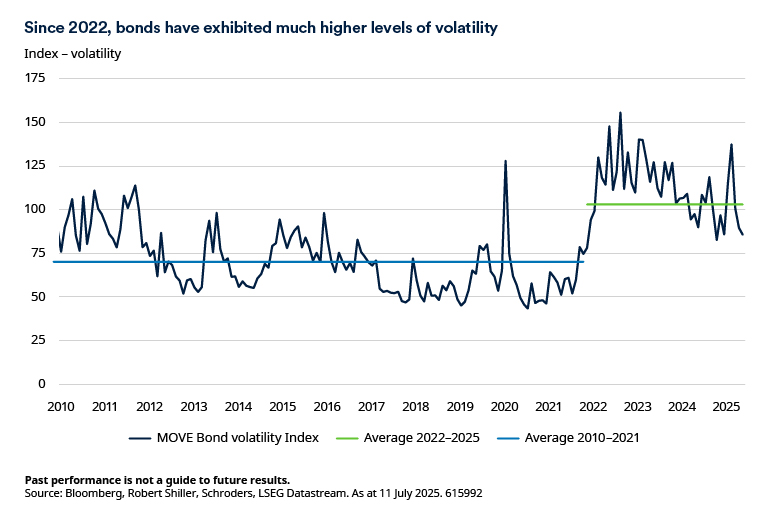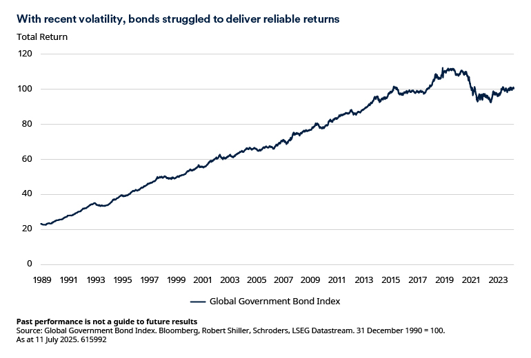 Recent years have confounded those expectations. Since 2022, global bond markets have been much more volatile (Chart 1) and that has made bonds a less dependable source of returns (Chart 2).
