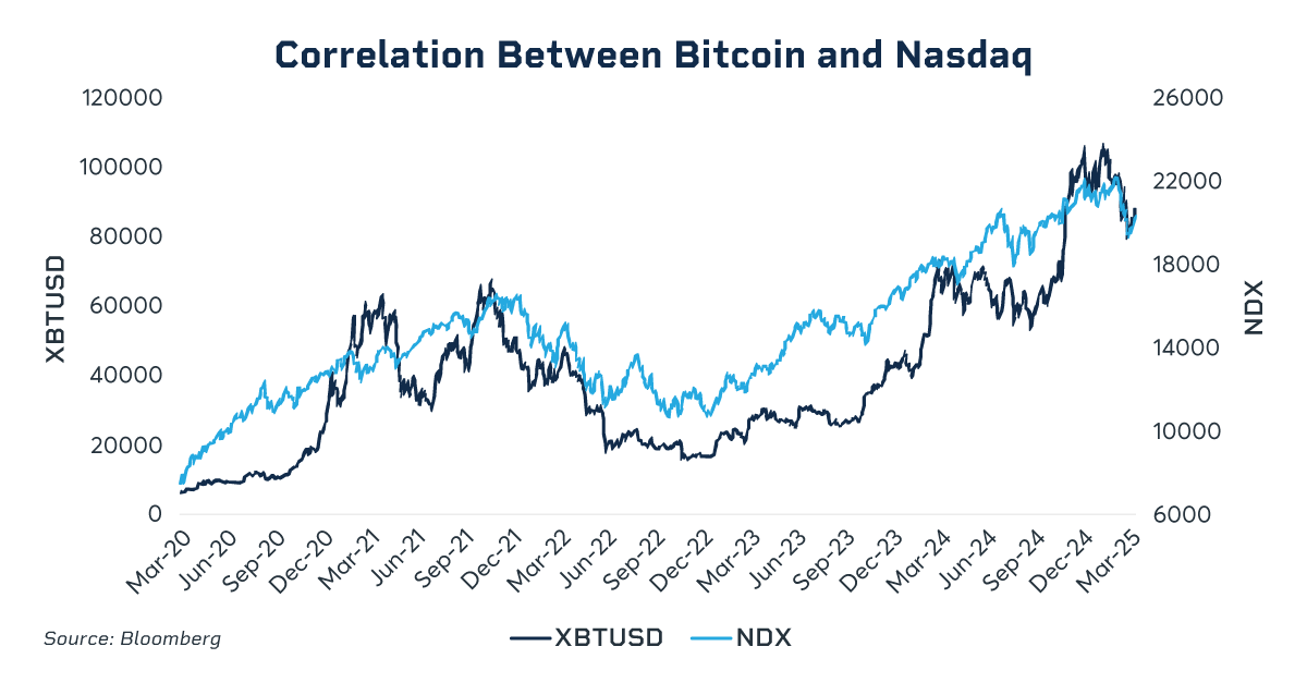 Second, bitcoin retains a strong correlation with the Nasdaq, a relationship that remains confounding to many traders but easily explained by others. Many institutional trading desks often group volatile assets like the Nasdaq and bitcoin into the same portfolio, assuming a Nasdaq traders’ expertise in handling volatility equips them to manage bitcoin’s price swings. Consequently, a sharp decline in the Nasdaq often triggers sales of bitcoin to cover margin requirements.