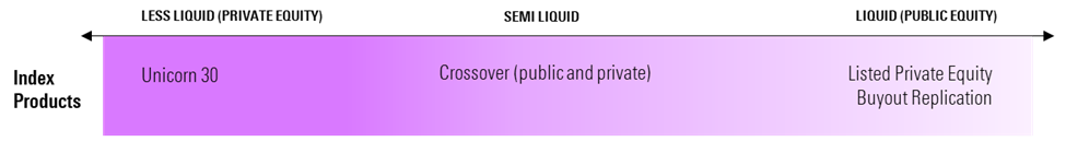 These visual guides help clarify how indexes like the Unicorn 30 and Buyout Replication indexes bridge the gap between offering new tools for asset allocation, benchmarking, and liquidity management.