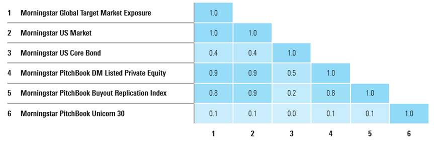 The growing prominence of private markets has led to a convergence with public markets, but the industry has yet to see the emergence of widely adopted passive investment options for PE. In response, Morningstar and PitchBook, have introduced two compelling indexes that can serve as a basis for capturing private equity exposure: access to late-stage venture capital through the Unicorn 30 Index, and a new approach to public market index replication of buyout strategies using machine learning via the Buyout Replication Index. These indexes, rather than traditional investable products, are frameworks that support the development of investment strategies with private market characteristics – without the operational friction.