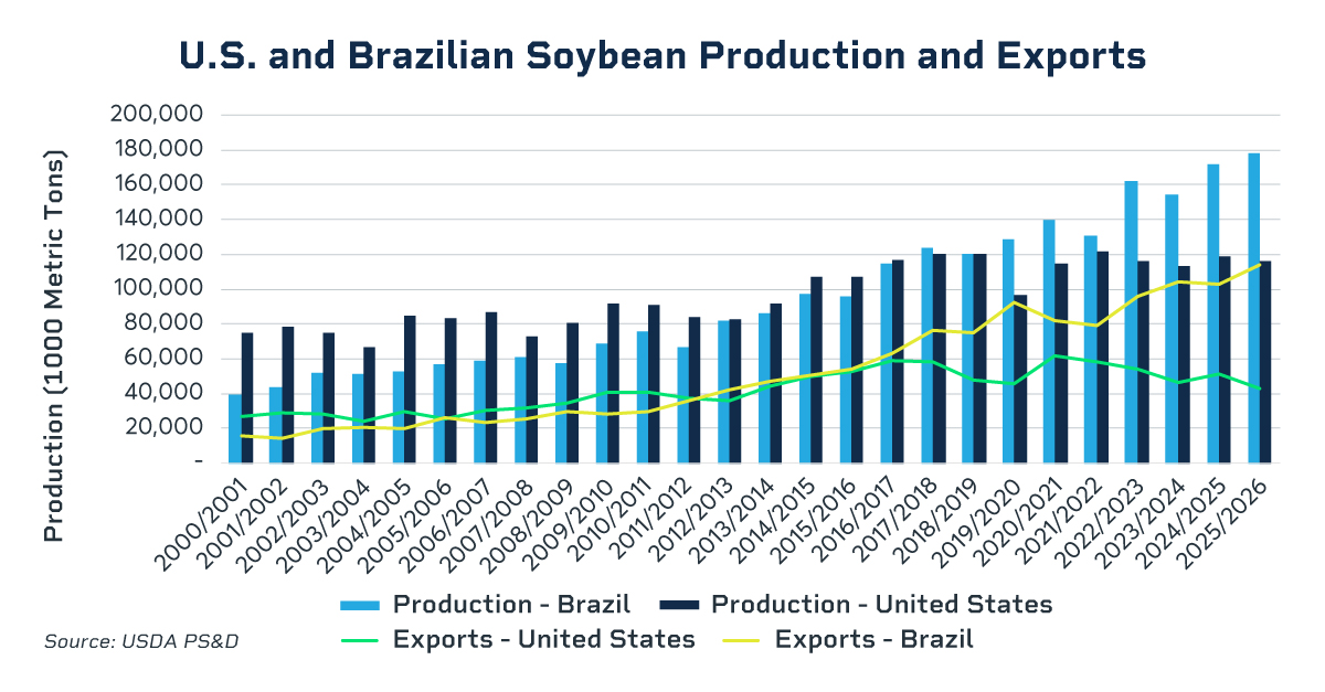 This flip unfolded against a backdrop of continued Brazilian soybean dominance, with the country holding the title as the world’s largest soybean producer after first surpassing the U.S. in the 2017 crop year.