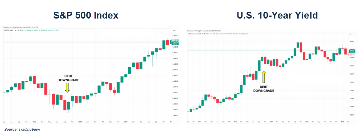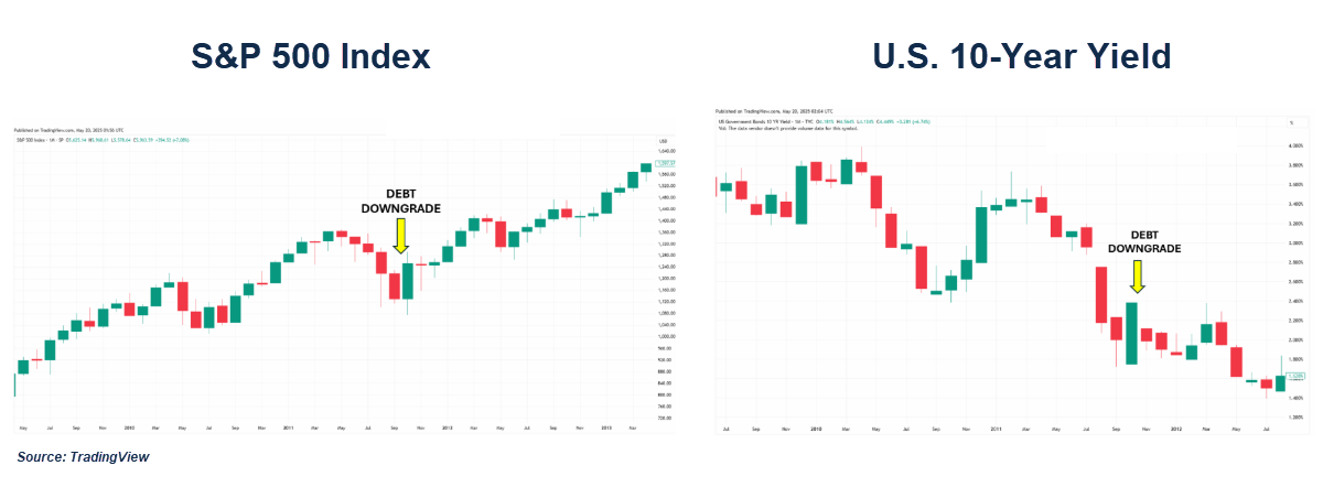 - Prior downgrades in 2011 and 2023 had immediate market impacts but did not lead to sustained economic downturns.