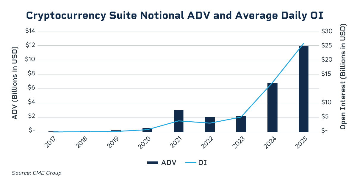 This momentum is also being reflected in the derivatives market. In February, CME Group expanded its Crypto derivatives suite with the launch of Cardano, Chainlink and Stellar futures. This comes off the back of a year of records for the exchange's Crypto product suite, with total notional volume up 75% in 2025 vs 2024.
